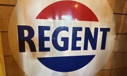 REGENT CIRCULAR SIGN TIN SINGLE SIDED 98CM DIAMETER CONDITION: AS PER PHOTOS COLLECTION ONLY -OUR SHOWROOM IS SITUATED 10 MINUTES FROM JUNCTION 22 OF M5 MOTORWAY